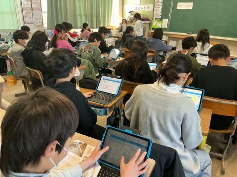 総合の学習では、発表に向けてそれぞれの班で準備を進めていました。どの班も個性がある発表になりそうです。