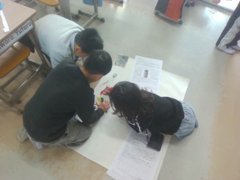 総合では一年間で学んだことをまとめて、グループで発表するための模造紙の準備もしていました。