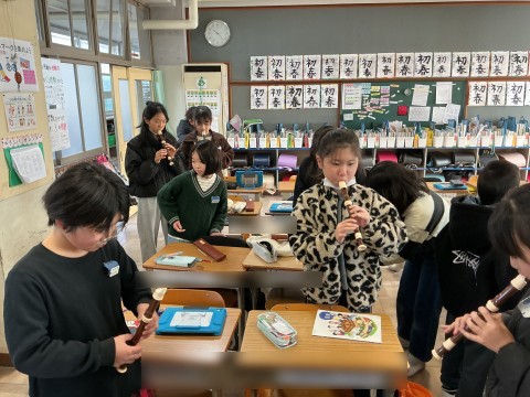 どのクラスもリコーダーの練習をしています。ファのシャープの練習を頑張っています。