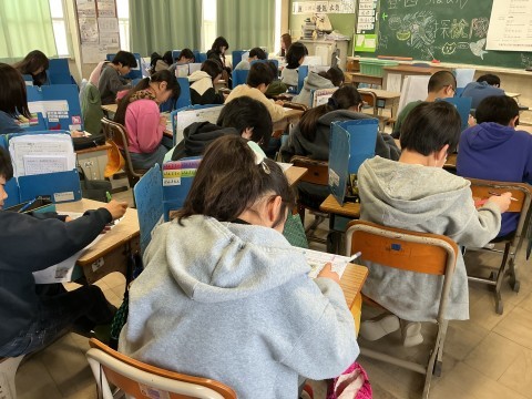 算数は円について学習しているクラスやテストに取り組んでいるクラスがありました。