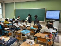 外国語はNSの先生とのインタビューテストに向けて練習中です。例文の回答を考える子や役割を分けて練習したりしている子たちがいました。