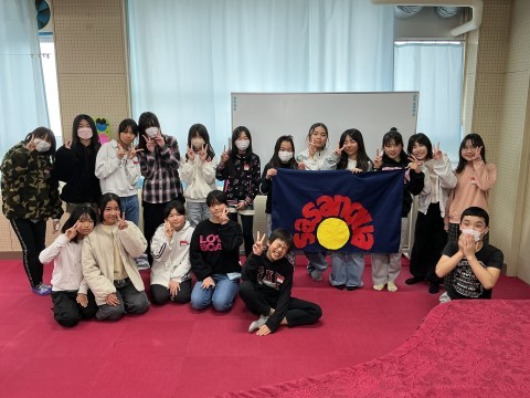 サザンカ旗が完成しました 公開日 2026/03/12 更新日 2026/03/12 6年生 有志のみんな、ありがとう。素敵な旗が出来上がりました。当日は、この旗の近くでたくさん写真を撮ってくださいね。
