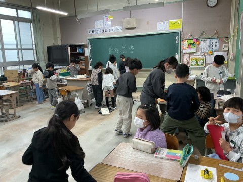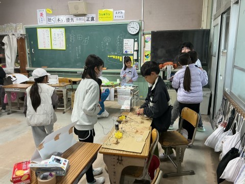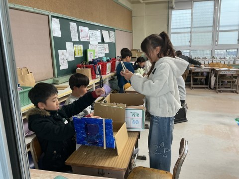 理科で学んだことなどを使いながらおもちゃや遊びを考えていました。お店のようなコーナーにして、お互いに遊びあっていました。楽しそうです。