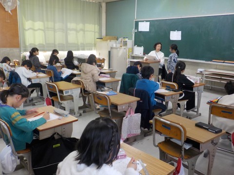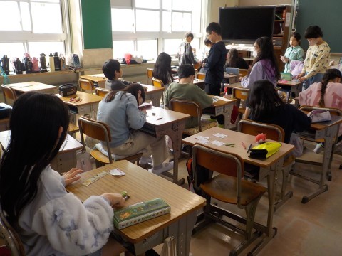 修了式後は今年度の学級で最後の時間を過ごしています。通知表をもらっていたり、お互いにメッセージを書いたり、それぞれのクラスで過ごしていました。