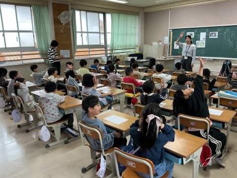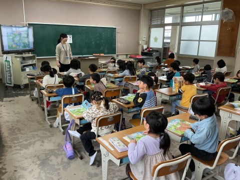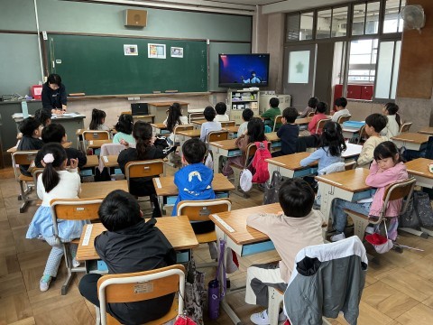 1年生の様子です。今日は、学校探検をしていました。職員室にも来ましたが、とても静かに入っていましたよ。