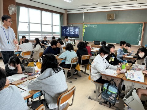 社会は「人権」についてグループで考えていました。政治などの学習で、選挙なども学んでいきます。