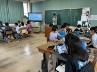 外国語の学習では教科書を使った学習がはじまりました。教科書の動画を見たり、単語を練習したりしました。さらに外国語の時に使う名札を作製しはじめました。