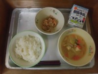今日の給食は、ミニコッペパン、ビーンズシチュー、コーンソテー、抹茶チョコチップケーキ、牛乳でした。