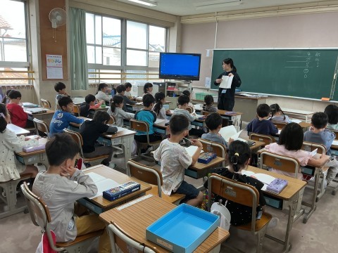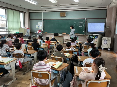 国語は「あさのおひさま」という文章を読んでいます。文章を読みながら、自分たちの朝起きてからすることなどと照らし合わせてかんがえています。