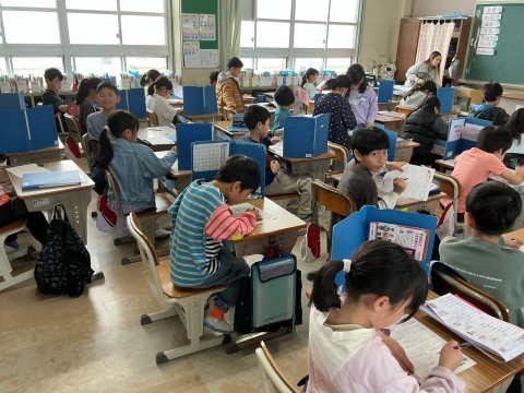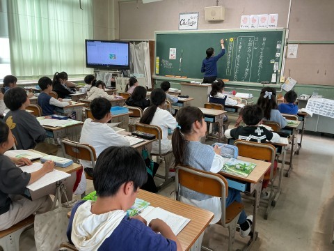 国語はお話の作者になったつもりで、物語の続きを書くという単元の学習がはじまっています。1時間目のようで、学習計画を立てていました。他のクラスでは新出漢字や小テストに取り組んでいます。
