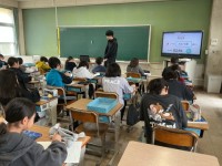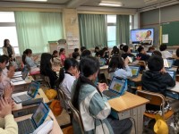 5年生の様子です。社会の授業では、地球儀を使って学習をしていました。具体物があると、とても分かりやすいですね。