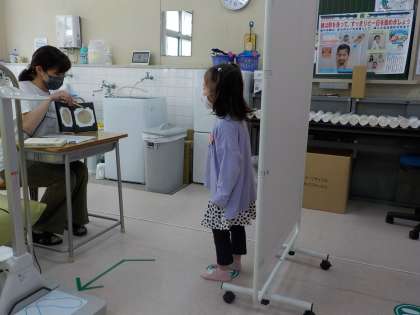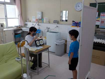 石原色覚検査表を用いて、ひとりずつ個別に行います。