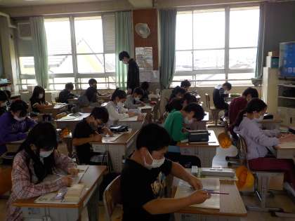 2組算数:合同な三角形を見つけるためにはどうすればいいか考えています。