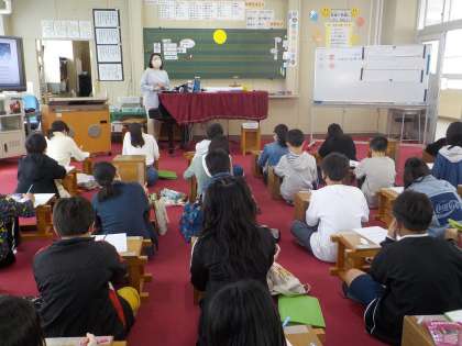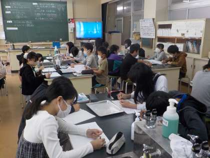 1組理科:だ液にはどのようなはたらきがあるかを調べています。