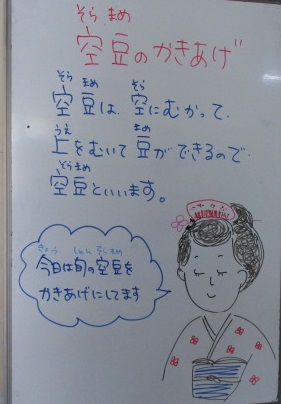旬のそら豆を使って,かき揚げにしました。