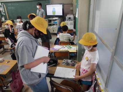 1組 算数で,写真を見てどのように道が交わっているか考えています。