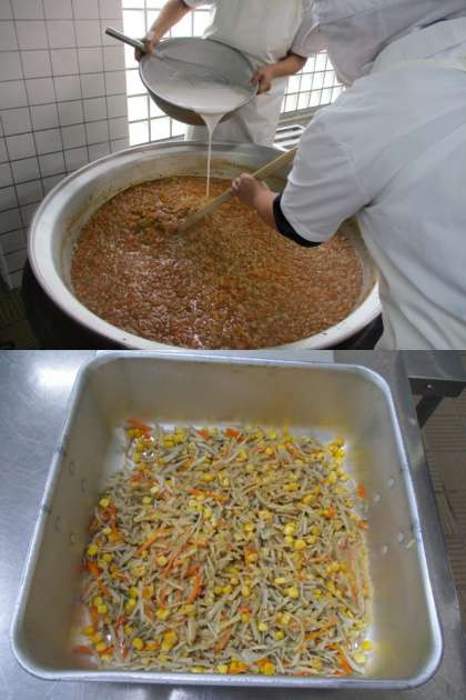 今日は,カレールウを使わずに,カレー粉・クミン・ローリエで味を調えて,米粉でとろみをつけました。小麦粉アレルギーの児童へ配慮したカレーライスです。