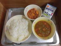 ごはん 豚汁 厚揚げの鶏そぼろあん さつまスティック 牛乳