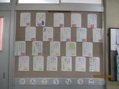 保健委員会の児童が作った健康標語が掲示されています。なかなかの力作ぞろいです。前を通ったときは、見てくださいね。