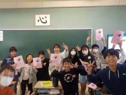 教室をのぞくと、それぞれが明日への熱い想いをしおりに書いていました。