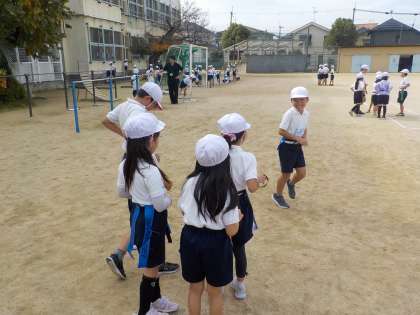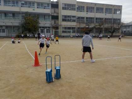 チームで作戦を考え、フェイントを使ったり、スピードを変えたりしながら、上手に鬼を交わし走り抜けています。