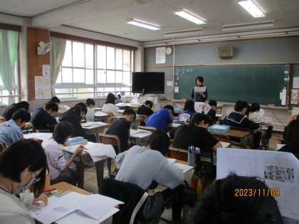 渋染め一揆の学習です。初めて読む文章ですが、一生懸命呼んでいる友達の読み声をしっかり聞いています。