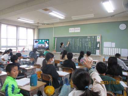 国語では、お手本となるビデオを見て、大事な話し合いのポイントをつかんでいます。