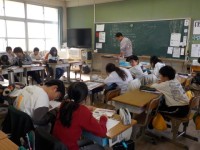 保護者の方が待っているところに入場してきた5年生の皆さん。大きな拍手で迎えていただき、堂々とそして美しく調和した歌声を体育館中に響かせてくれました。最後の部分で子どもたちの発案で取り入れた手話を見事に全員で揃えて発表できました。