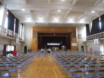 新6年生のみなさんが登校し、先生たちと一緒に式場となる体育館や教室の準備をしてくれました。