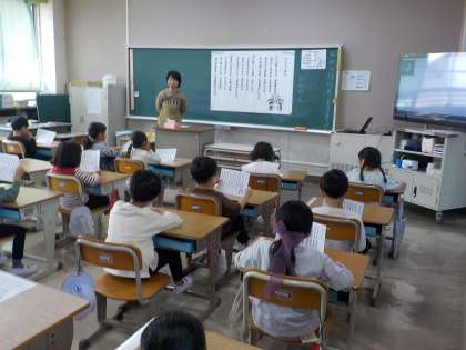 校歌を聞き、口ずさんでいる子もいました。校歌を聞き終わった後に、知っている言葉などを発表していました。少しずつ歌えるように頑張ってほしいです。