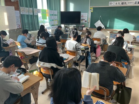 朝の時間にクラスでは色々な活動をしています。本日は朝読として10分間という短い時間ですが読書をしていました。教室にある本や図書室で借りた本を読んでいました。あるクラスはこの時間で図書室へ行き、新しい本と出逢う時間を過ごしています。