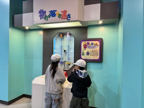 科学館にて音や電気など、科学の不思議を体験中。
