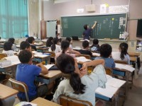 理科は夏の生き物について学習しています。運動場に出て、夏の生き物を探しています...