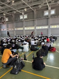 11:35部屋の最終チェックを終え、体育館で退館式を行いました。海洋センターの方...