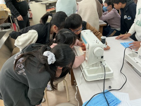 「針の穴が見えない!」「難しい!」と言いながら一生懸命、練習しています。