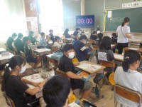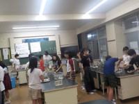 理科は実験をしていました。炭酸水や線香,石灰水などを使って実験に取り組んでいま...