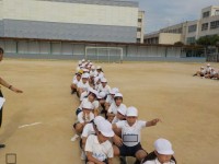 連合運動会の個人競技の練習。狭くなっている運動場を工夫して使っていきます。チャイ...