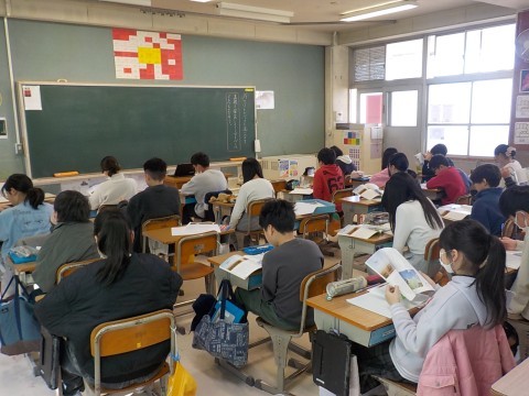 国語は「詩」の学習でした。詩を読んで、どのように読むか、感じるか、解釈するかなど、交流していました。