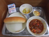 ミニパン 揚げパン うずらの卵入り野菜スープ チリコンカン久しぶりの揚げパンの日...
