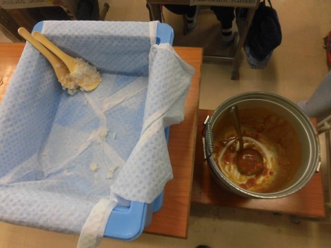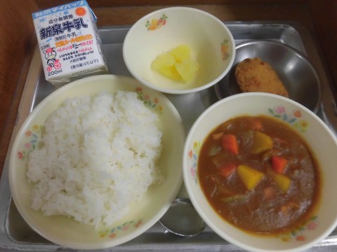 今日は、ごはん・ポークカレーライス・豆とひじきのサラダすべてが、ほとんどのクラス完食でした。とても素晴らしいですね。