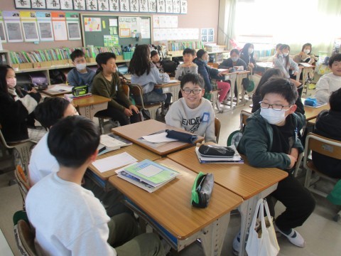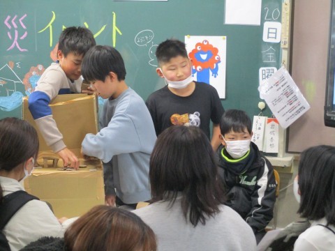 5年生最後の学習参観は防災学習の発表会でした。グループごとに出店方式で発表です。問題を出したり,体験コーナーをつくったり,視覚的に説明したり・・・こどもたちが問いをもって探究してきたことをどのように伝えればよいかを考え,工夫したことが伝わってきました。