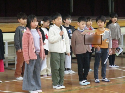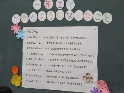 1組では,金曜日の学習参観にむけて発表の練習をしていました。この1年間でできるようになったことをグループで発表するようですよ。