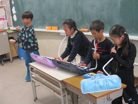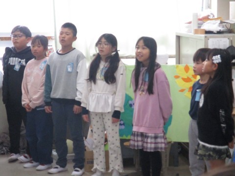 2組から,元気な歌声が聞こえてきます。6年生にとどける歌のようですね。みんなの気持ちがとどくといいね。