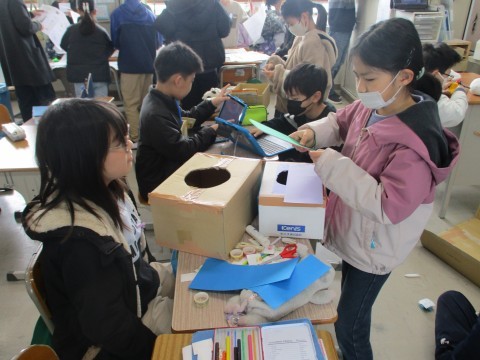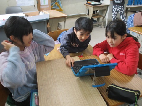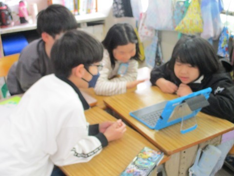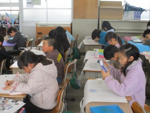 3組の総合的な学習の時間です。環境をテーマに学習を進めてきた成果を参観で発表します。今日は,資料作りや発表の練習をしていました。