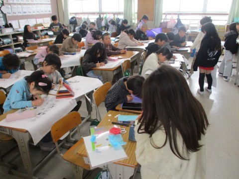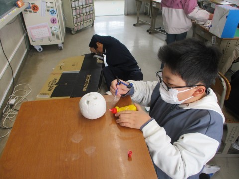 2組では,学習参観で使うお面を作っていました。いろいろな動物のお面が完成しました!