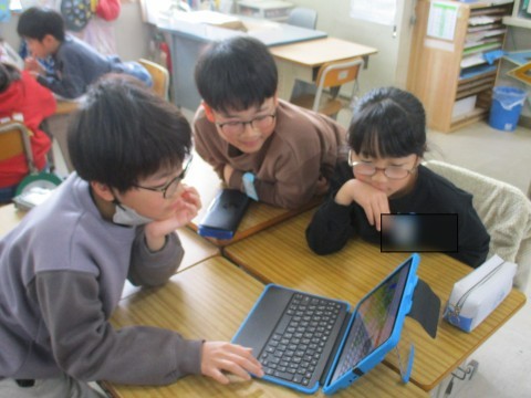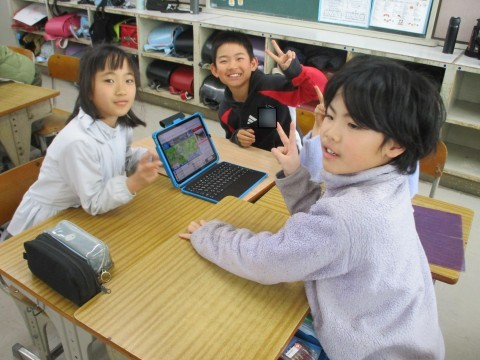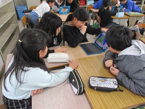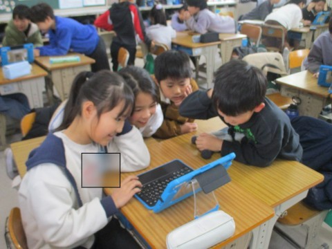 2組では,社会のテストが終わったこどもたちがタイピングの練習です。