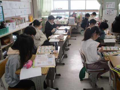 2組の社会です。板垣退助の演説のようすを見て、自由民権運動について話し合っていました。
