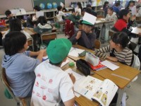 2組の算数です。円柱や角柱の見取り図をかく学習をしていました。立体を平面に表すのですから、難しいですよね。