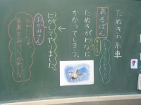 1組の算数です。10より大きい数のたし算,ひき算をしています。黒板に答えを書きたくてしようがないこどもたちでした。