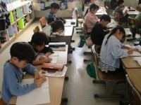 2組の生活科です。おうちでがんばってきたお手伝いのようすを動画で撮影してきたこどもたち。友だちに伝える準備をしていました。1年生もタブレットを使うようになってきました。